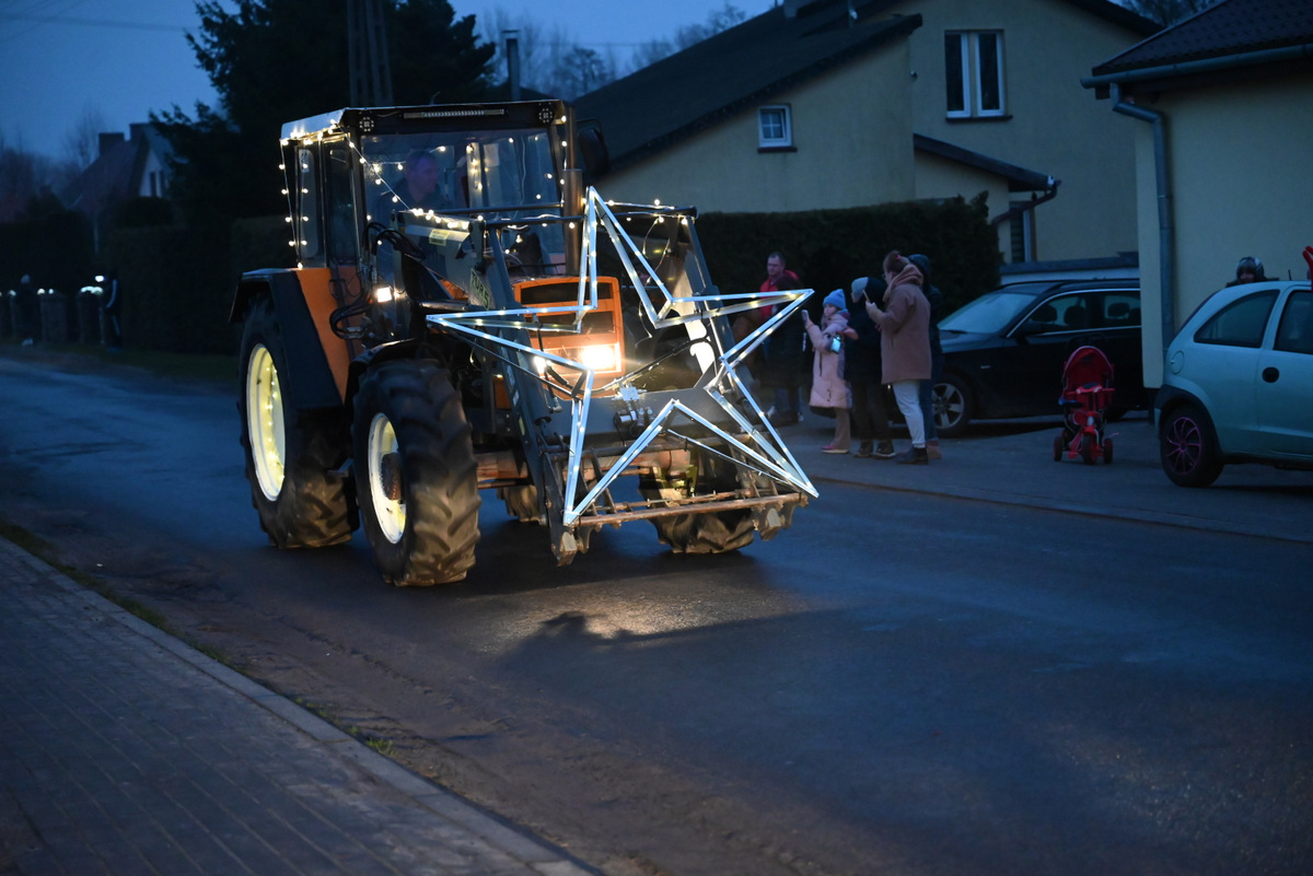 Zdjęcia przedstawiają II Jarmark Bożonarodzeniowy w Złotopolu oraz przyozdobione i oświetlone ciągniki rolnicze podczas Parady Ciągników Rolniczych.