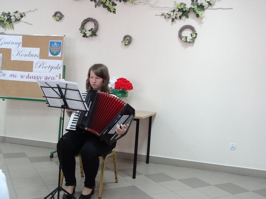 Uroczystym uwieńczeniem tej imprezy kulturalnej był występ uczennic Publicznego Gimnazjum w Wichowie z II kl.: Gabrieli Bonkiewicz i Emilii Jabłońskiej, które zaprezentowały swoje umiejętności wokalno - instrumentalne.