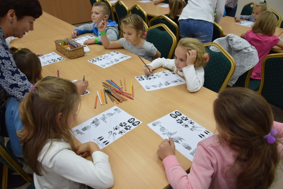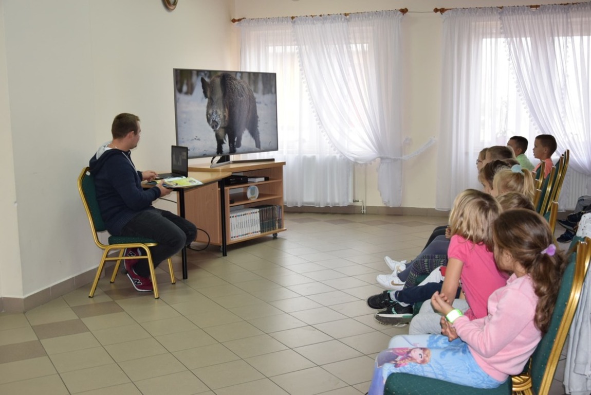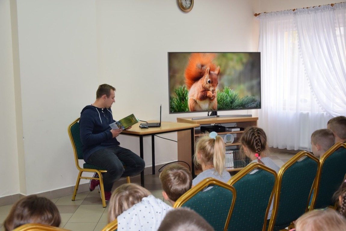 O tym jak ważną rolę w życiu człowieka odgrywają przyroda i żyjące w niej zwierzęta, dowiedziały się dzieci z klasy „zero” Zespołu Szkół im. Marii Konopnickiej w Radomicach na lekcji bibliotecznej prowadzonej przez pracownika biblioteki p. Rafała Strużewskiego. Spotkanie odbyło się 22 października w miejscowej bibliotece i świetlicy. Budowę łap i kształty śladów zwierząt, a także czym się owe ślady charakteryzują i ciekawostki na temat zwierząt, dzieci poznały oglądając prezentację. Ślady zwierząt mieszkających w lasach, a także zwietrząt domowych zostały szczegółowo omówione, a na zakończenie, o każdym zwierzęciu i jego śladach została przeczytana rymowanka. Miłym akcentem była wyświetlona animacja prezentująca różne gatunki zwierząt, a na koniec klasyka gatunku, bajka „Wilk i zając”. Dzieci z zainteresowaniem słuchały ciekawych opowieści o zwierzętach. Chętnie odpowiadały na pytania i doskonale poradziły sobie z zadaniem mającym na celu dopasowanie śladów zwierząt do ich właścicieli. Na zwycięzców i wszystkie dzieci biorące udział w zagadce czekała nagroda. Po skończonej lekcji bibliotecznej mali goście dostali Wyprawkę Czytelniczą „Pierwsze czytanki dla…” w ramach akcji „Mała książka, wielki człowiek”, a także Karty Małego Czytelnika, dzięki którym – po każdej wizycie w bibliotece i wypożyczeniu książeczki – będą mogły zebrać specjalne naklejki, by na koniec otrzymać Dyplom Małego Czytelnika. Dzieci wraz z Paniami nauczycielkami z radością zapowiedziały kolejną wizytę w bibliotece. Dziękujemy dzieciom za mile i owocnie spędzony czas.