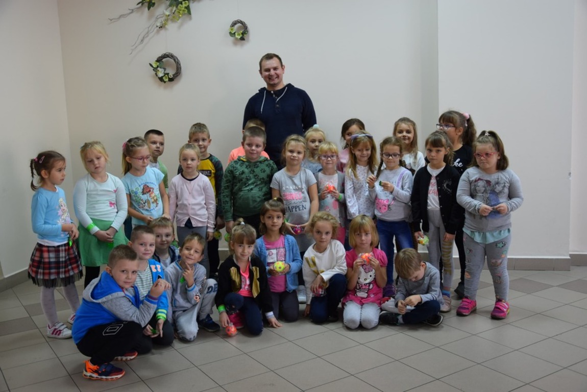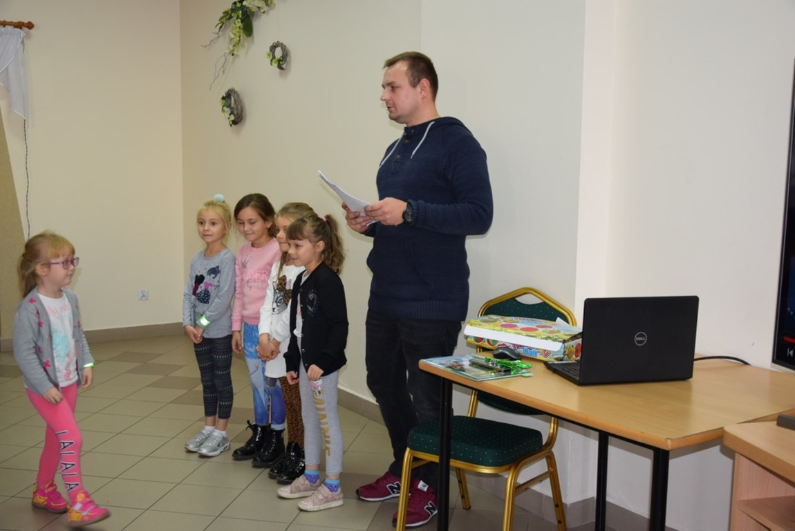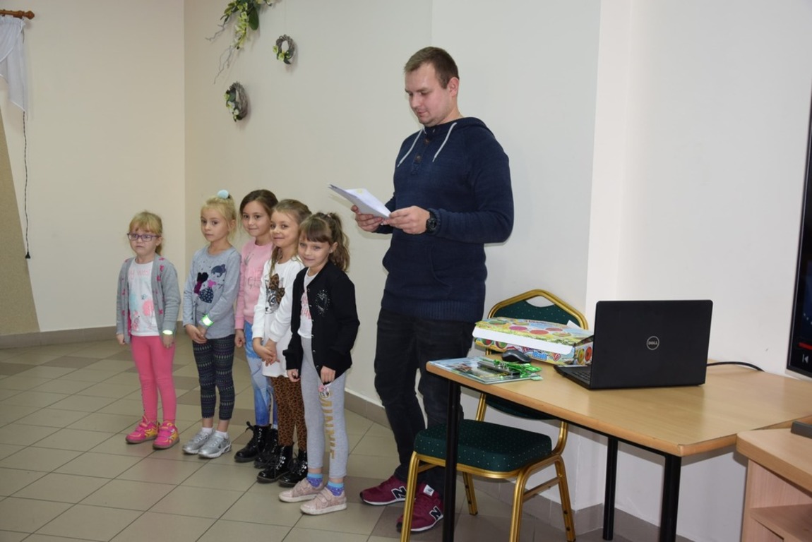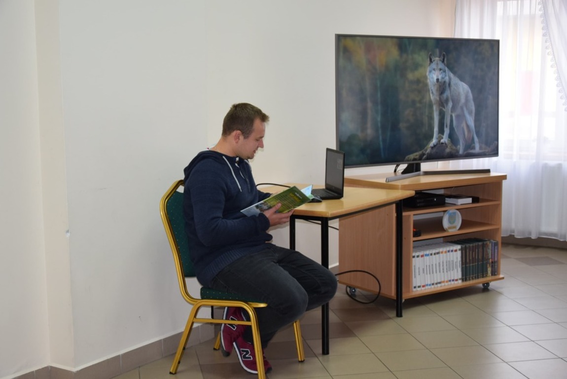 O tym jak ważną rolę w życiu człowieka odgrywają przyroda i żyjące w niej zwierzęta, dowiedziały się dzieci z klasy „zero” Zespołu Szkół im. Marii Konopnickiej w Radomicach na lekcji bibliotecznej prowadzonej przez pracownika biblioteki p. Rafała Strużewskiego. Spotkanie odbyło się 22 października w miejscowej bibliotece i świetlicy. Budowę łap i kształty śladów zwierząt, a także czym się owe ślady charakteryzują i ciekawostki na temat zwierząt, dzieci poznały oglądając prezentację. Ślady zwierząt mieszkających w lasach, a także zwietrząt domowych zostały szczegółowo omówione, a na zakończenie, o każdym zwierzęciu i jego śladach została przeczytana rymowanka. Miłym akcentem była wyświetlona animacja prezentująca różne gatunki zwierząt, a na koniec klasyka gatunku, bajka „Wilk i zając”. Dzieci z zainteresowaniem słuchały ciekawych opowieści o zwierzętach. Chętnie odpowiadały na pytania i doskonale poradziły sobie z zadaniem mającym na celu dopasowanie śladów zwierząt do ich właścicieli. Na zwycięzców i wszystkie dzieci biorące udział w zagadce czekała nagroda. Po skończonej lekcji bibliotecznej mali goście dostali Wyprawkę Czytelniczą „Pierwsze czytanki dla…” w ramach akcji „Mała książka, wielki człowiek”, a także Karty Małego Czytelnika, dzięki którym – po każdej wizycie w bibliotece i wypożyczeniu książeczki – będą mogły zebrać specjalne naklejki, by na koniec otrzymać Dyplom Małego Czytelnika. Dzieci wraz z Paniami nauczycielkami z radością zapowiedziały kolejną wizytę w bibliotece. Dziękujemy dzieciom za mile i owocnie spędzony czas.