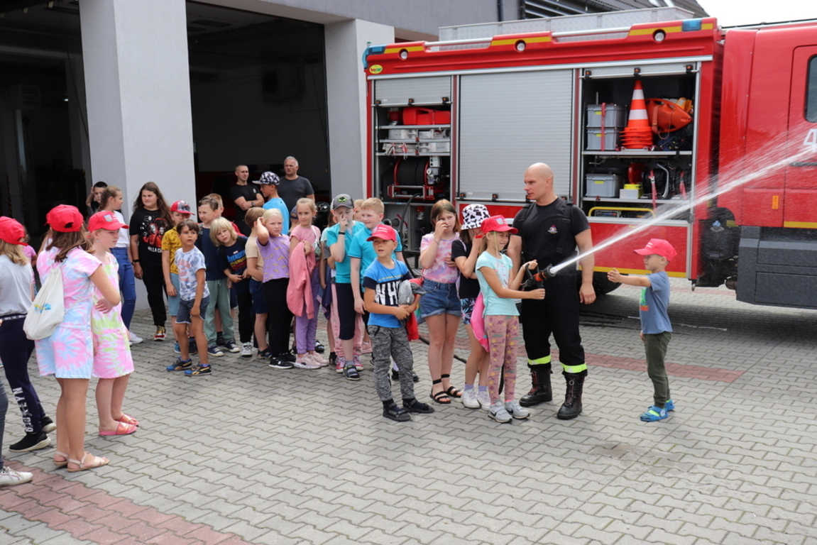 W dniach 6 lipca i 13 lipca dzieci z bibliotek w Radomicach, Trzebiegoszczu, Jastrzębiu i Karnkowie odwiedziły Komendę Państwowej Straży Pożarnej w Lipnie