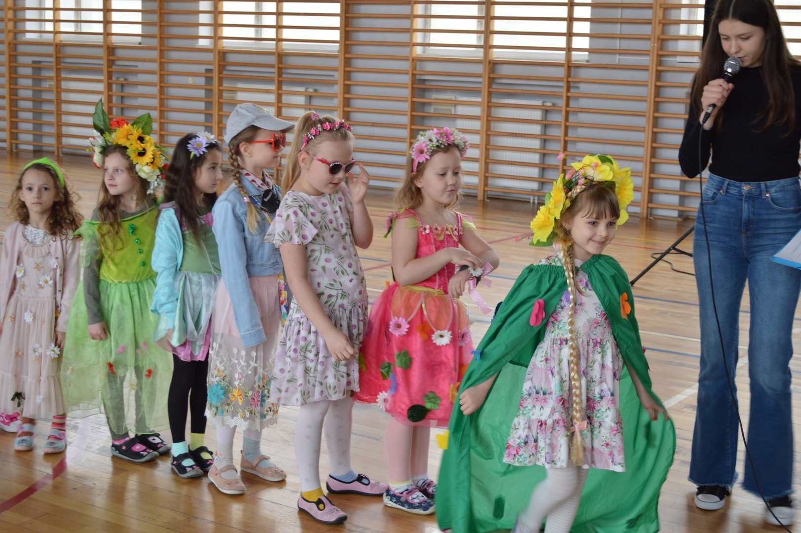 Pierwszym był konkurs „Najpiękniejsza Pani Wiosna”. Każdą klasę reprezentował jeden uczeń. Zadaniem uczestników było przygotowanie przebrania Pani Wiosny. Pod uwagę brana była pomysłowość, wkład własny i ogólny wyraz artystyczny. Jury w składzie: p. dyrektor Iwona Rutkowska, p. Monika Wódkowska i p. Agnieszka Kwaśniewska wyłoniły zwycięzców w dwóch kategoriach wiekowych.