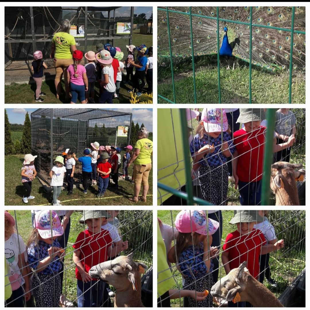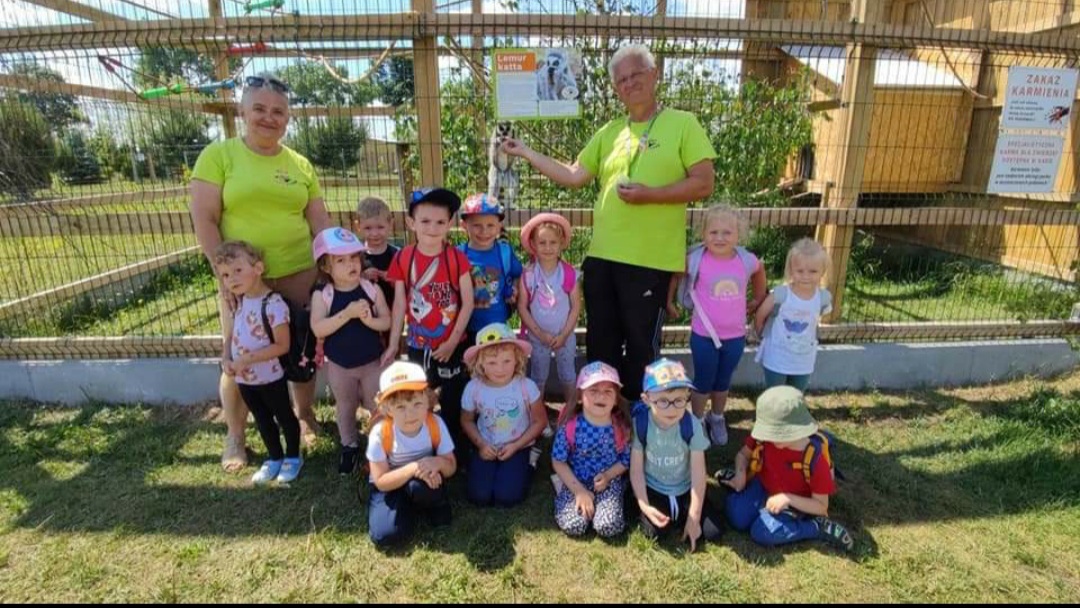 Dzieci na miejscu zostały bardzo miło przywitane i zaproszone do zwiedzania. Opiekunowie zwierząt przedstawiali kolejne zwierzątka, przy tym bardzo ciekawie opowiadając. Pogoda dopisała, więc dzieci z przyjemnością spacerowały i obserwowały zwierzęta. Przedszkolaki dowiedziały się, skąd one pochodzą oraz jakie zachowania są dla nich charakterystyczne. Dzieci były bardzo ciekawe i zainteresowane. Największą atrakcją było karmienie lemurów ich przysmakiem – rodzynkami. Przedszkolaki mogły je pogłaskać. Opiekunowie rozdali dzieciom przygotowane pokrojone marchewki, jabłuszka oraz gałązki, aby mogły nakarmić inne zwierzęta – kózki, świnkę oraz renifera.
