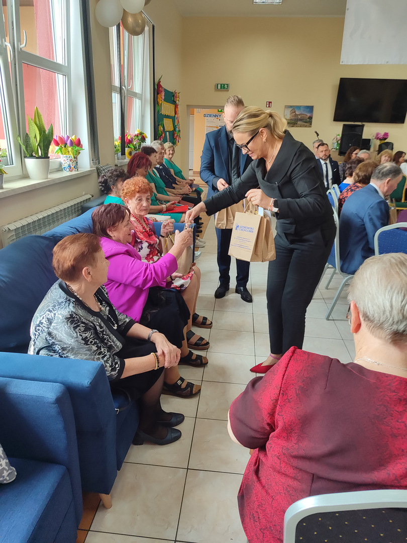 Szczególnym momentem wydarzenia był program artystyczny przygotowany przez uczestników domu. Seniorzy z ogromnym zaangażowaniem, radością i humorem zaprezentowali krótkie przedstawienie, które spotkało się z ciepłym przyjęciem i gromkimi brawami. Było to wzruszające świadectwo ich aktywności, twórczości i chęci dzielenia się swoim talentem z innymi.