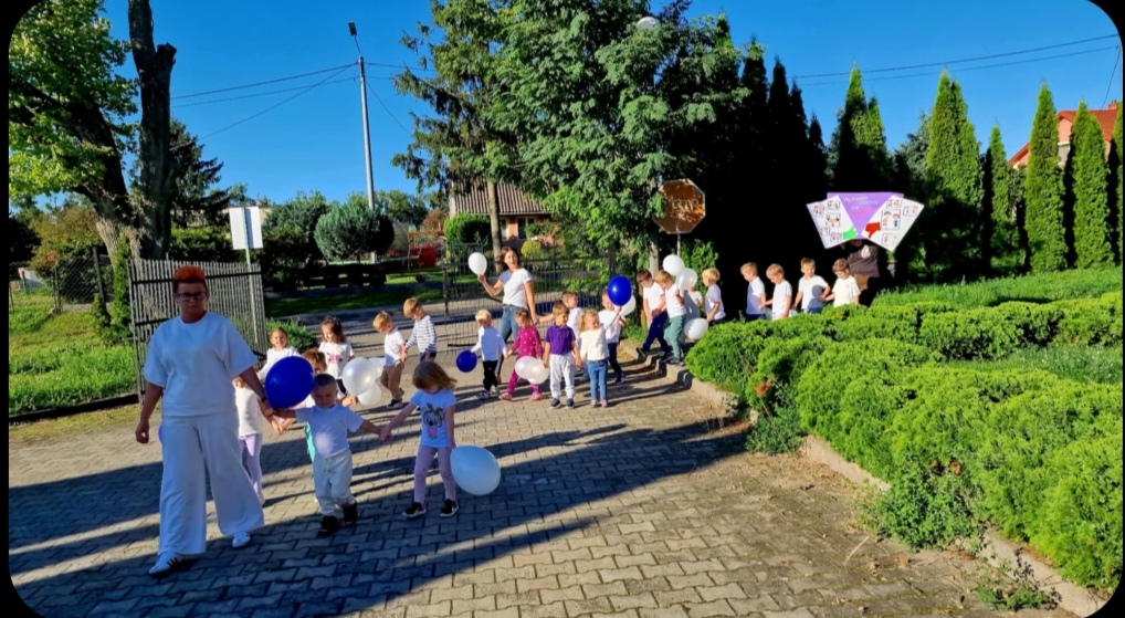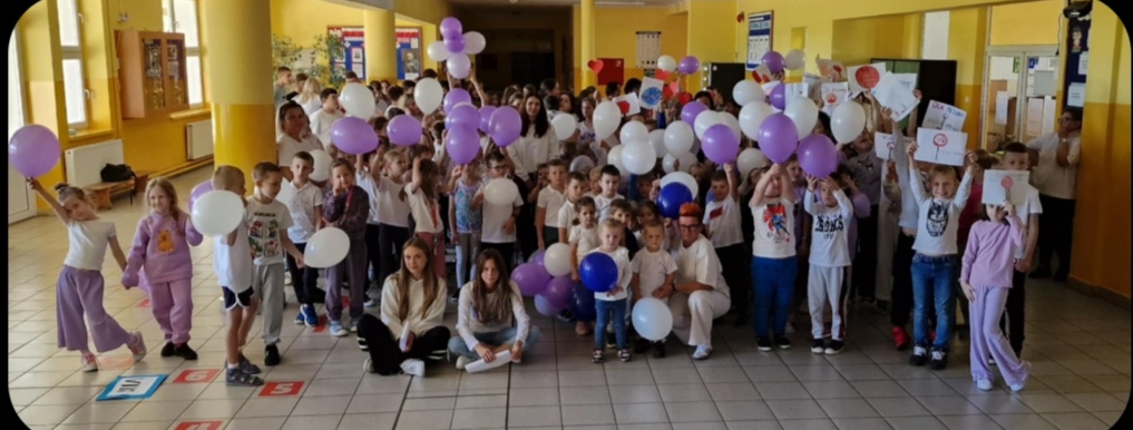 W środę dzieci z przedszkola jak i ze szkoły ubrały się na biało i fioletowo aby wziąć udział wspólnym marszu i głosić wspólnie hasło WYBIERAM DOBRO NIE AGRESJĘ .