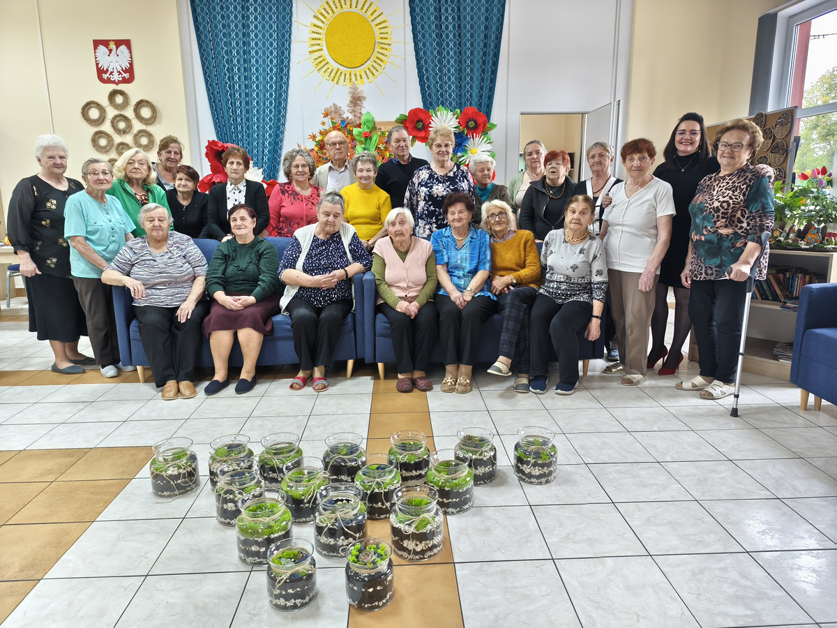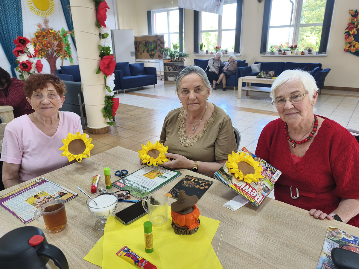 Nie zabrakło także zajęć manualnych na miejscu. Seniorzy rozwijali swoją kreatywność podczas warsztatów z „Bajecznego Świata”-tworząc jesienne świece w kształcie dyni, oraz z „Lawendowej Polany”, gdzie powstały piękne kompozycje „las w szkle”.