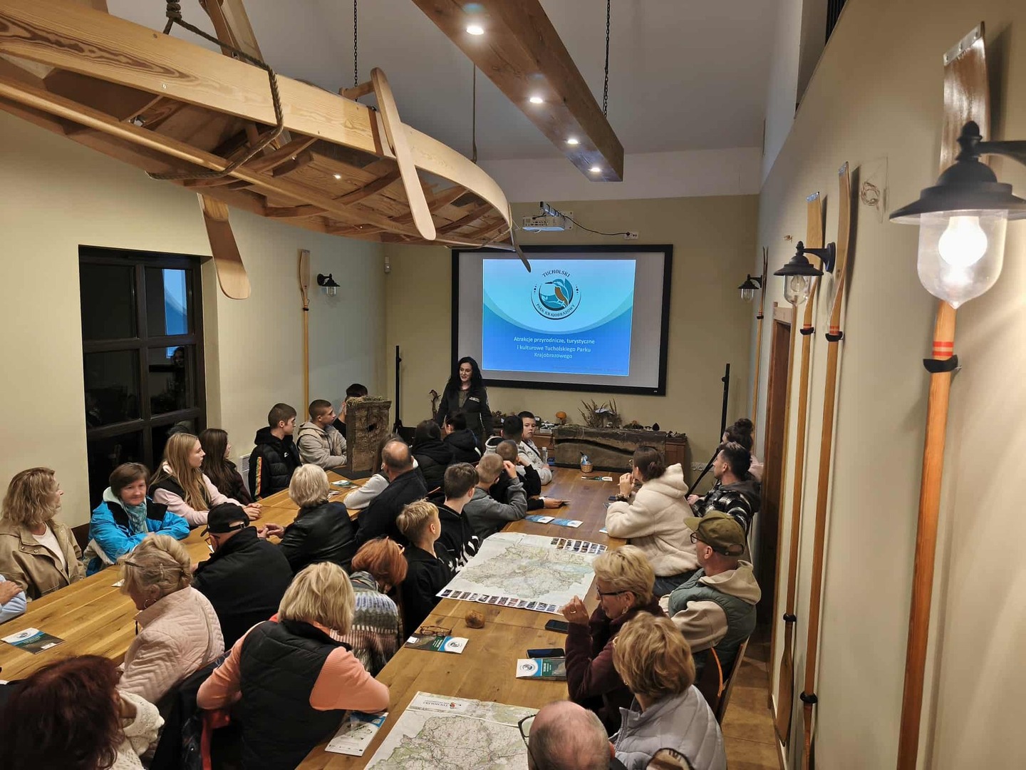 Uczniowie wzięli udział w prelekcji pn. „Atrakcje przyrodnicze, turystyczne i kulturowe Tucholskiego Parku Narodowego” przygotowanej przez Nadleśnictwo Zamrzenica, a następnie uczestniczyli w konkursach wiedzy i zadaniach oraz konkurencjach sportowych, m.in. w konkursie drwali czy rzucie podkową.