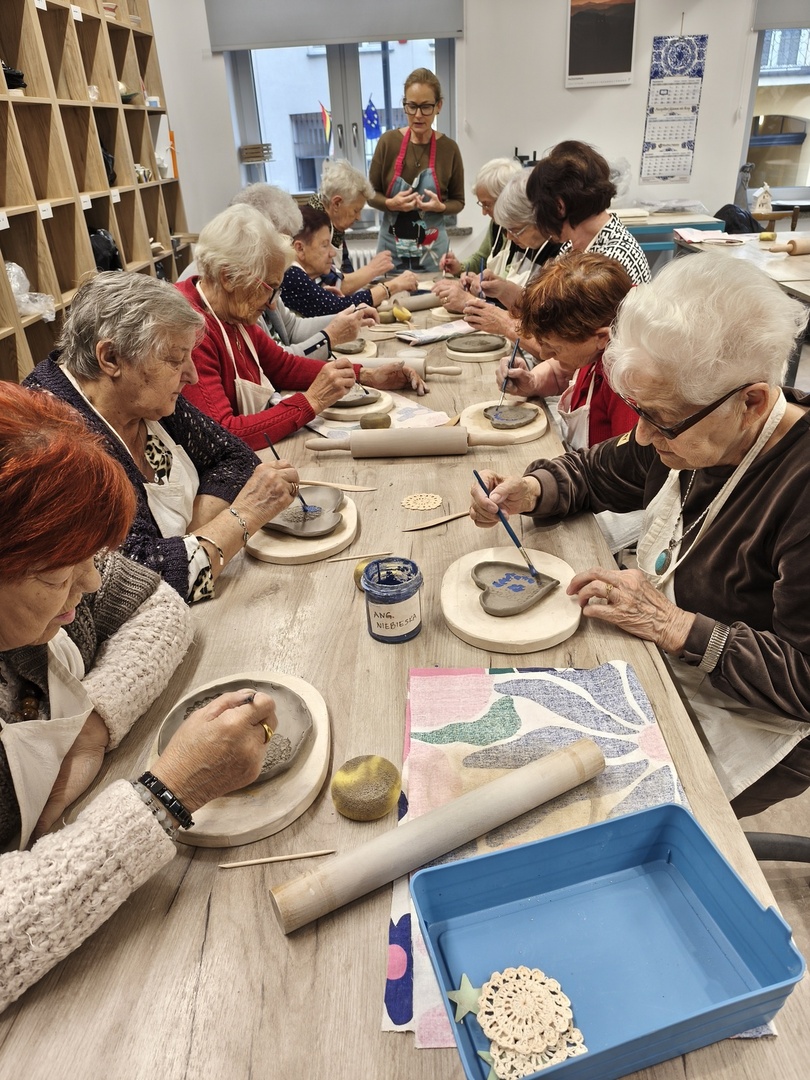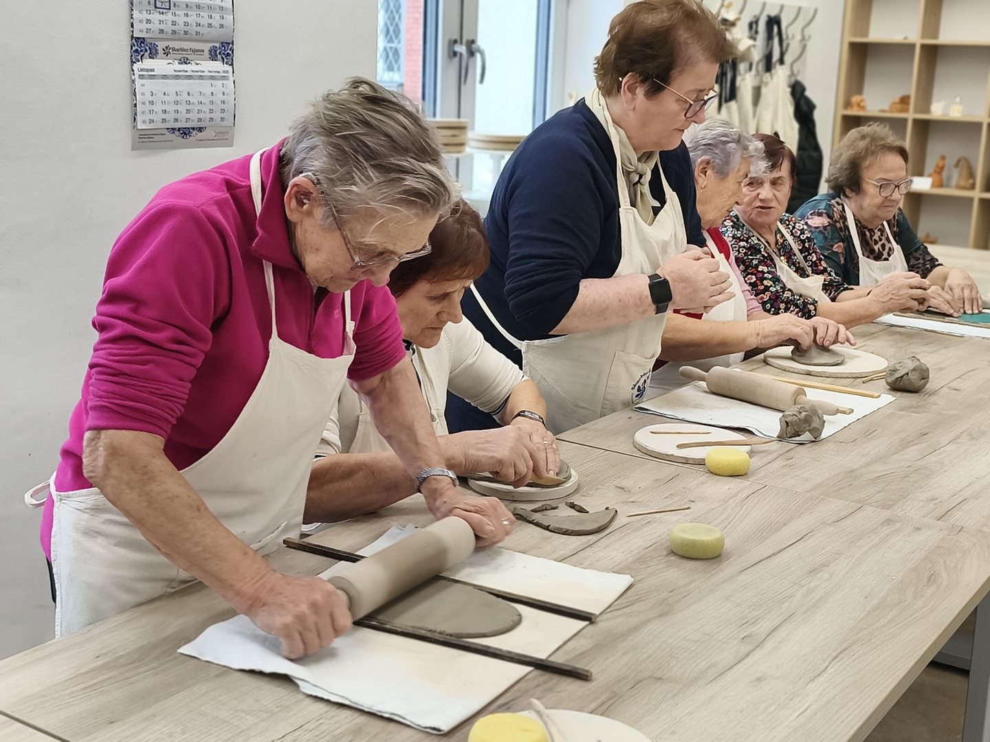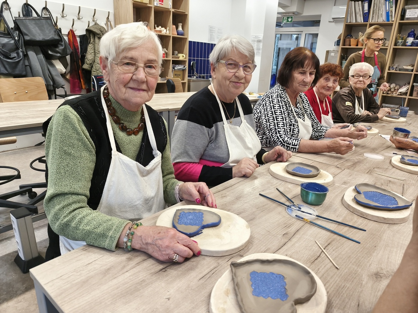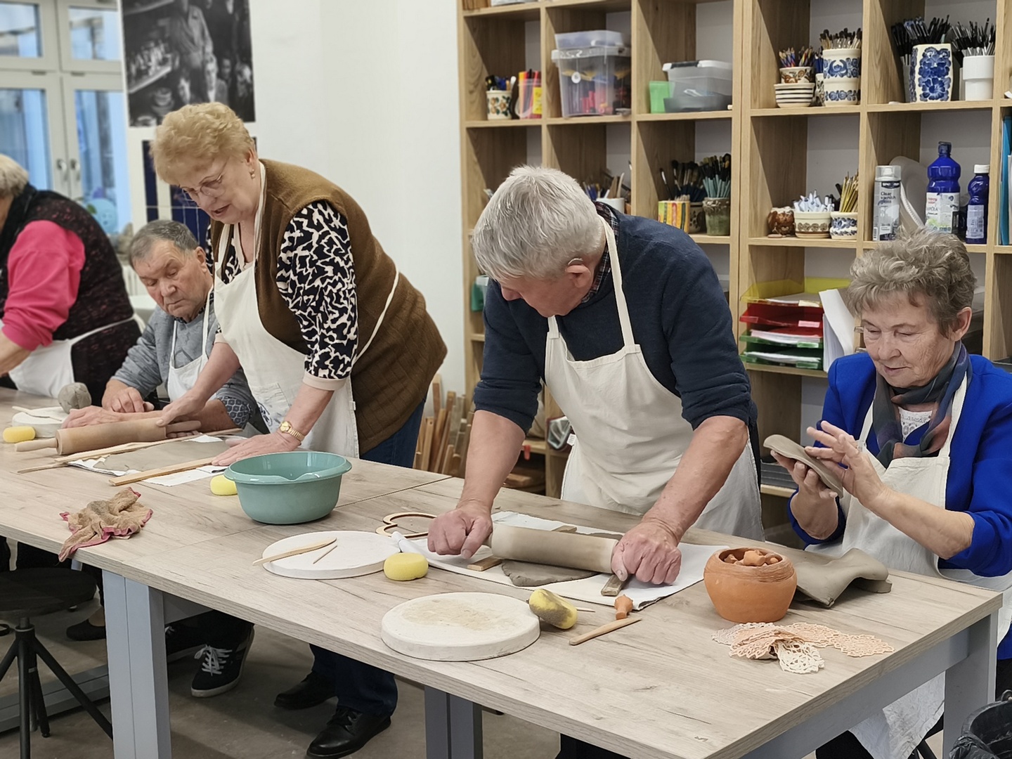 Drugim punktem były warsztaty ceramiczne, podczas których każdy uczestnik mógł własnoręcznie uformować mały talerzyk z gliny. Pod okiem instruktora seniorzy poznali tajniki pracy z tym naturalnym materiałem-od wyrabiania gliny, przez formowanie kształtu, aż po ozdabianie powierzchni. Nie zabrakło śmiechu, wzajemnych podpowiedzi i twórczego zapału.