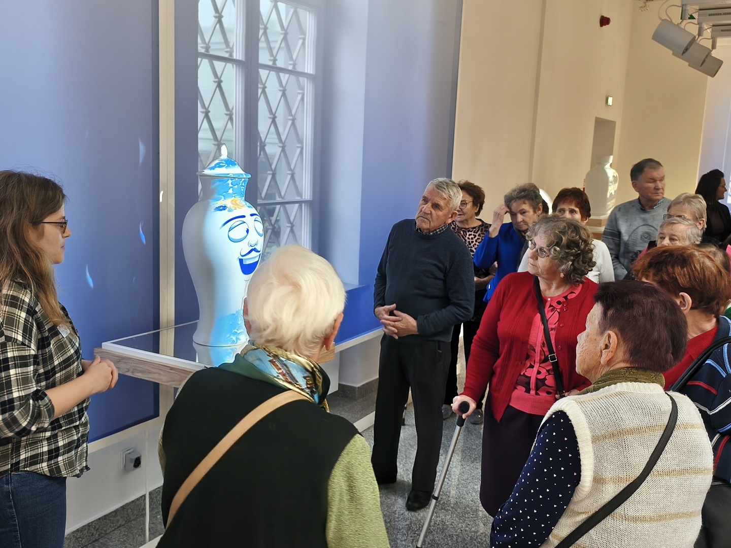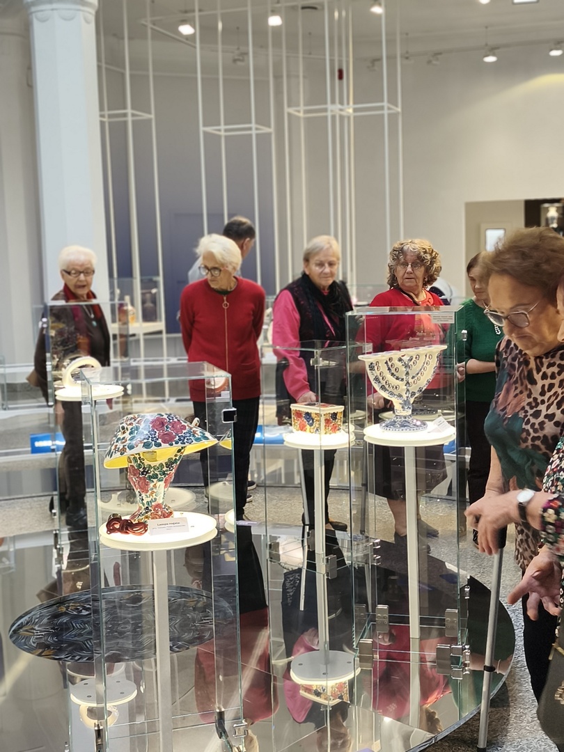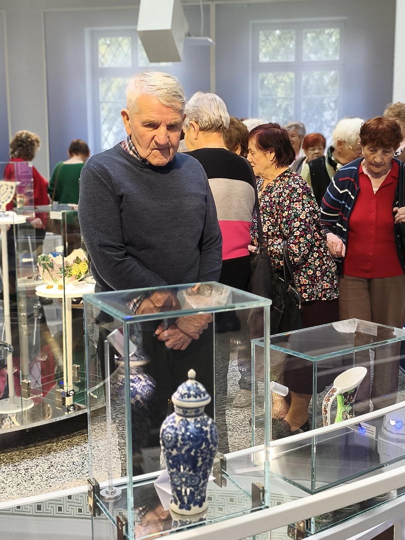 Seniorzy z DDPS+ wybrali się na ciekawą wycieczkę do Włocławka-miasta słynącego z pięknego, ręcznie malowanego fajansu. Pierwszym punktem programu było zwiedzanie Interaktywnego Centrum Fajansu, które słynie z imponującej kolekcji włocławskich wyrobów ceramicznych. Seniorzy z ciekawością poznawali proces produkcji fajansu, podziwiali zdobione naczynia i figury, które przez wieki były symbolem lokalnego rzemiosła. Pani przewodnik opowiadała o historii tej sztuki, przybliżając, jak Włocławek stał się ważnym centrum produkcji ceramiki, a wyroby tego miasta były eksportowane do całej Europy.