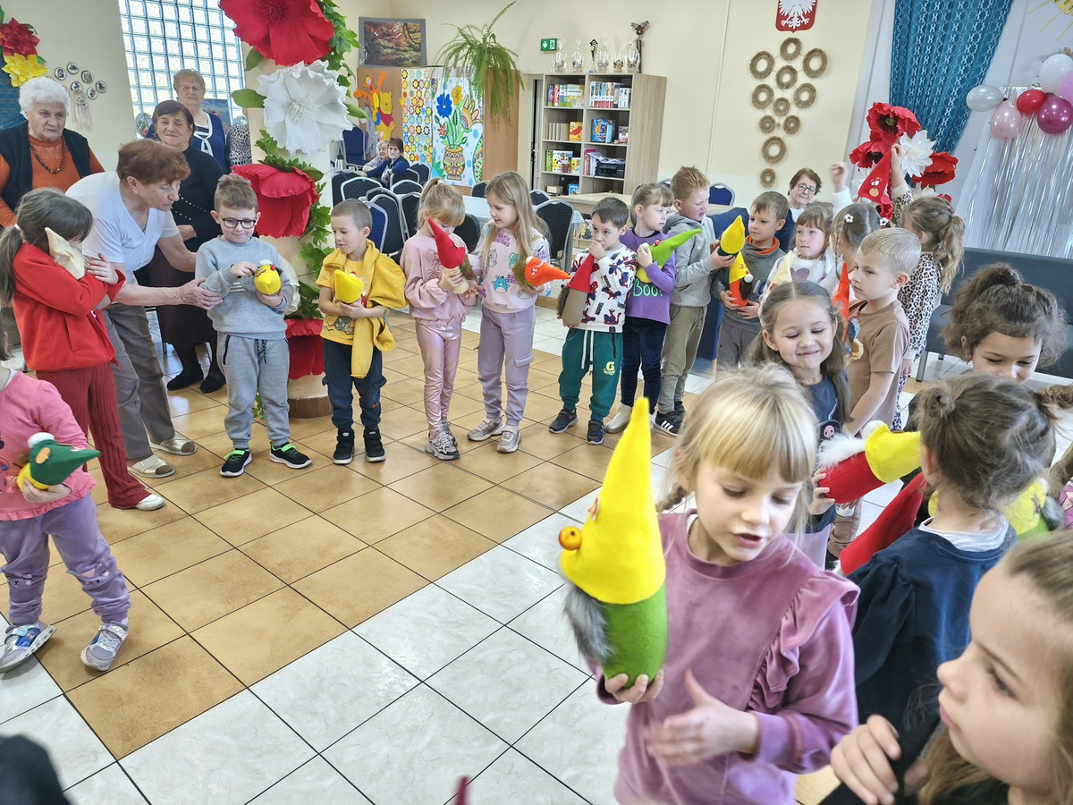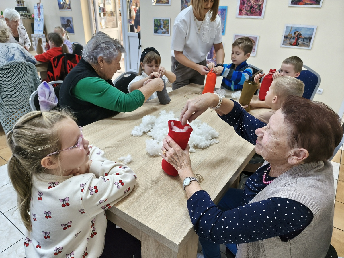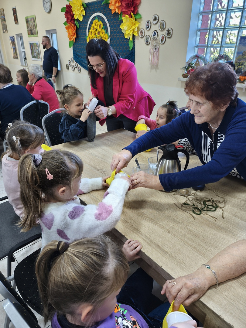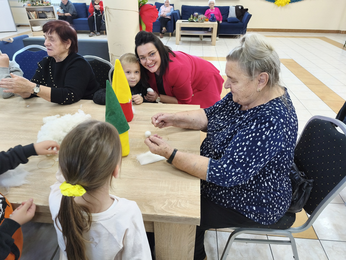 Spotkanie to było pięknym przykładem międzypokoleniowej integracji - dzieci wniosły do naszego Domu energię, spontaniczność i uśmiech. Wspólna praca i zabawa udowodniły, że mimo różnicy wieku łączy nas wiele-radość tworzenia, ciekawość świata i potrzeba bliskości.