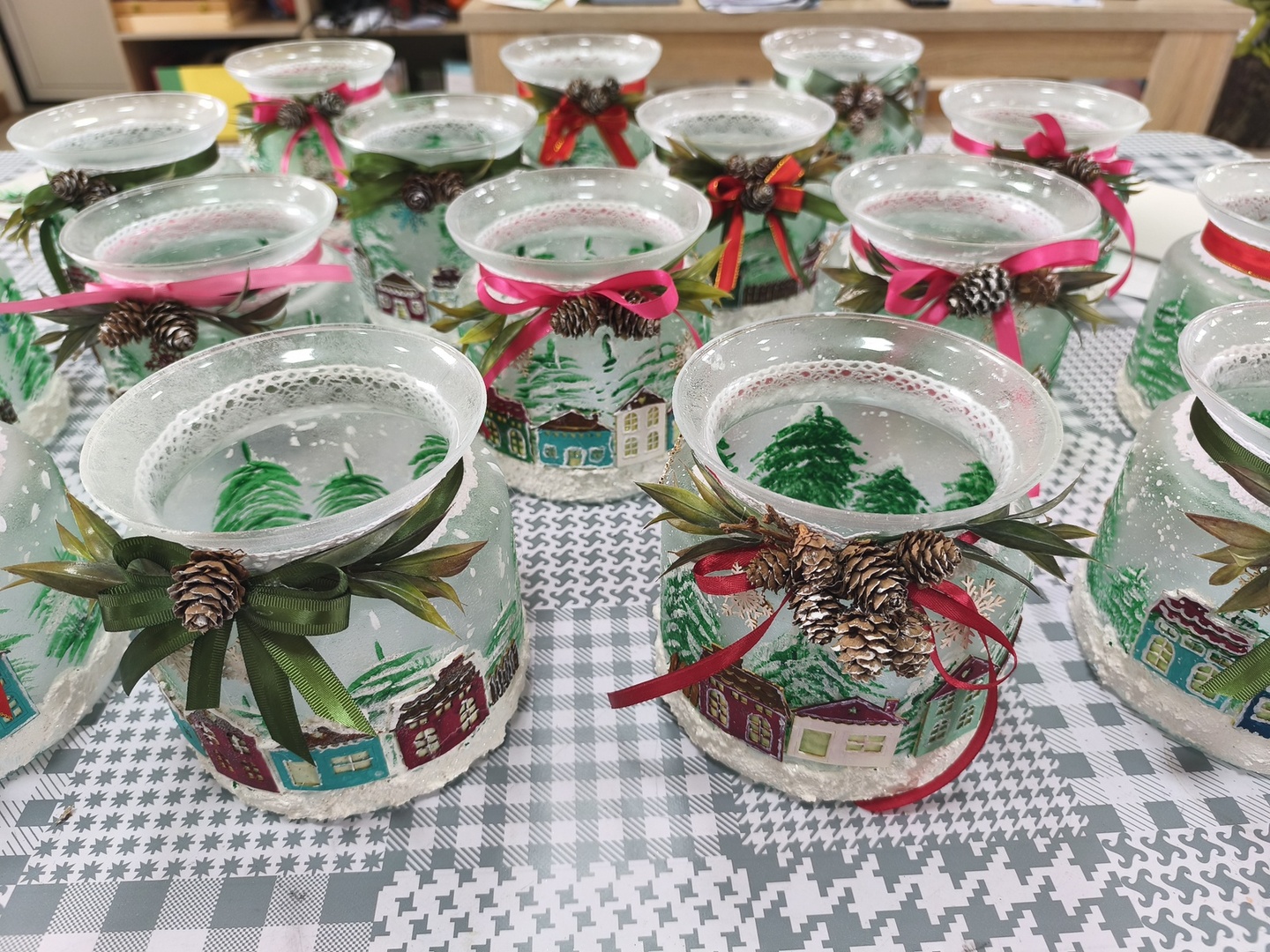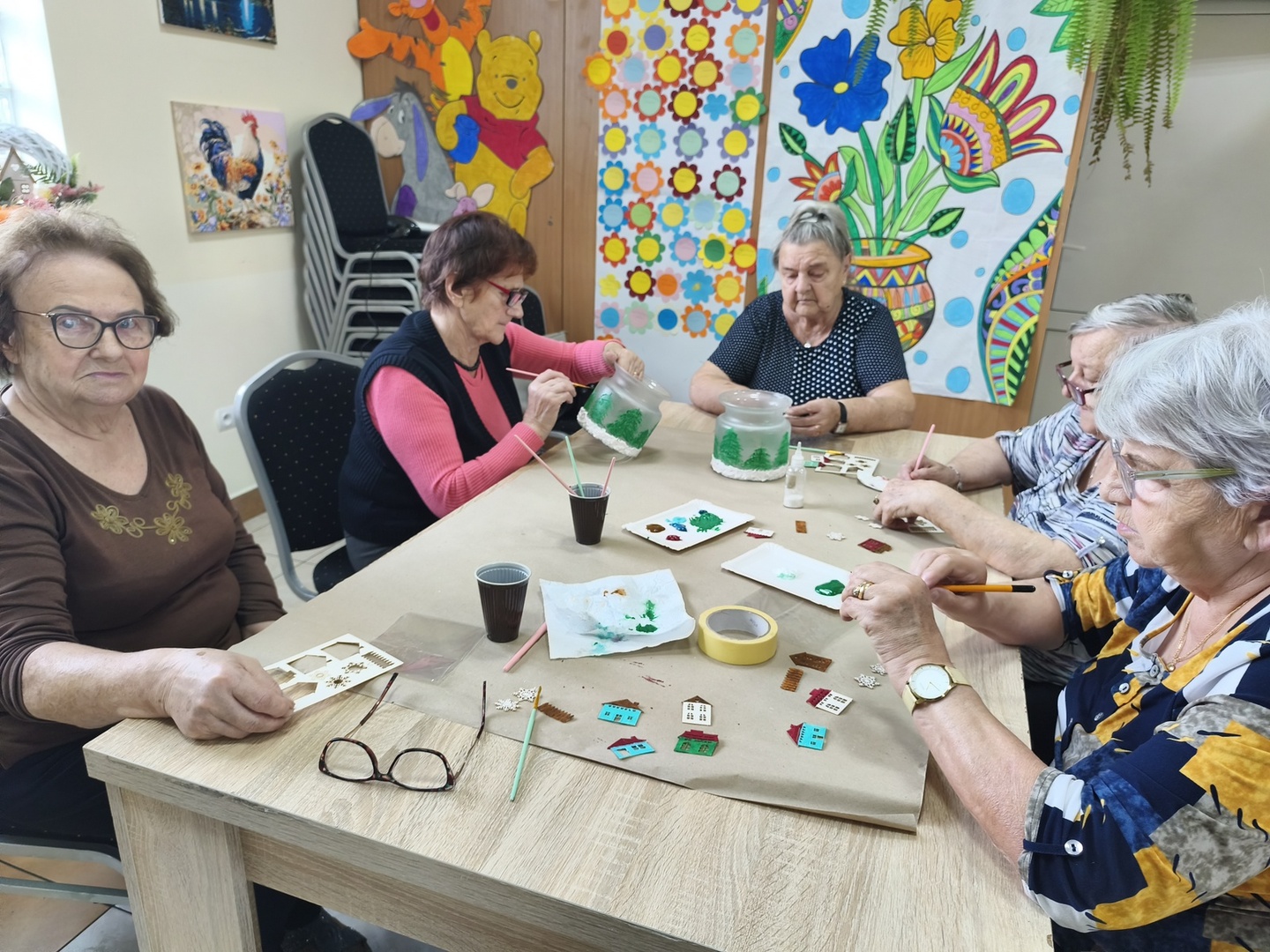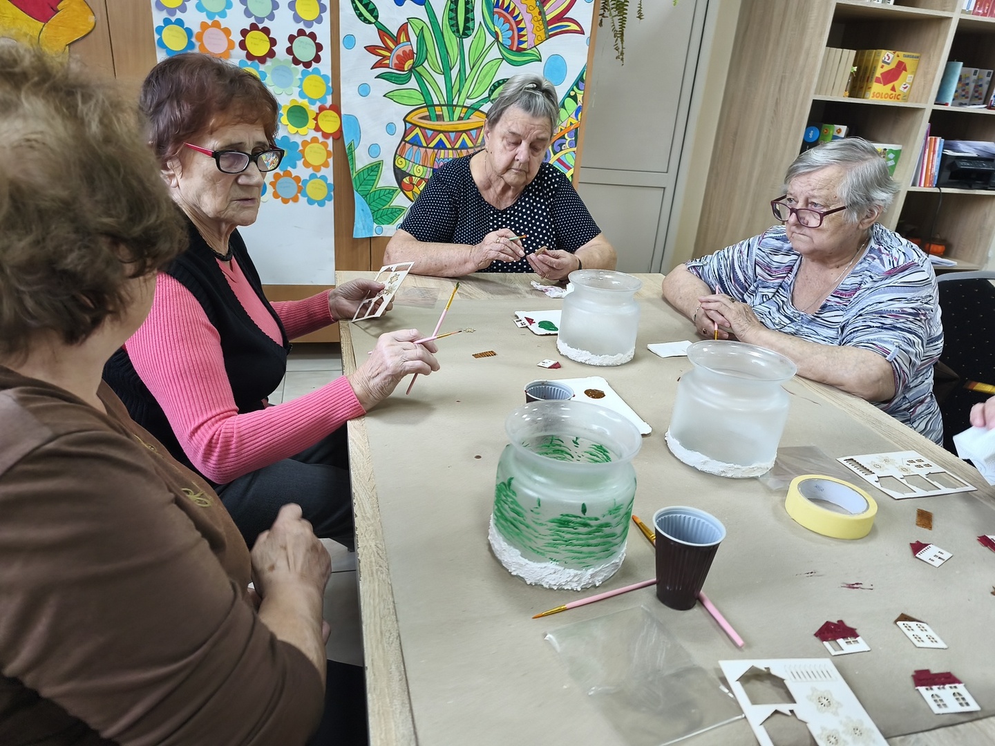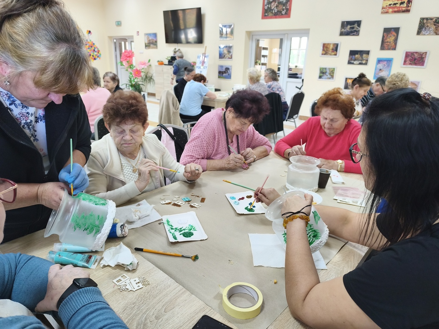 Na kolejnych warsztatach z Panią Danusią z Lawendowej Polany w naszym Domu zapanowała prawdziwie świąteczna atmosfera. Seniorzy tworzyli przepiękne lampiony ze szkła, które rozbłysły zimowym blaskiem. Każdy z uczestników włożył w swoją pracę mnóstwo serca i wyobraźni-na lampionach pojawiły się malownicze, ośnieżone miasteczka, choinki i zimowe pejzaże. Całość dopełniły błyszczące wstążki, gałązki świerku i delikatne szyszki, które sprawiły, że każdy lampion stał się małym dziełem sztuki.
