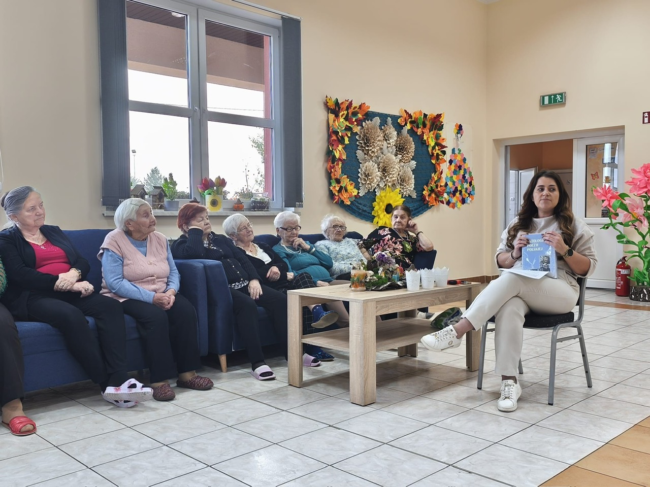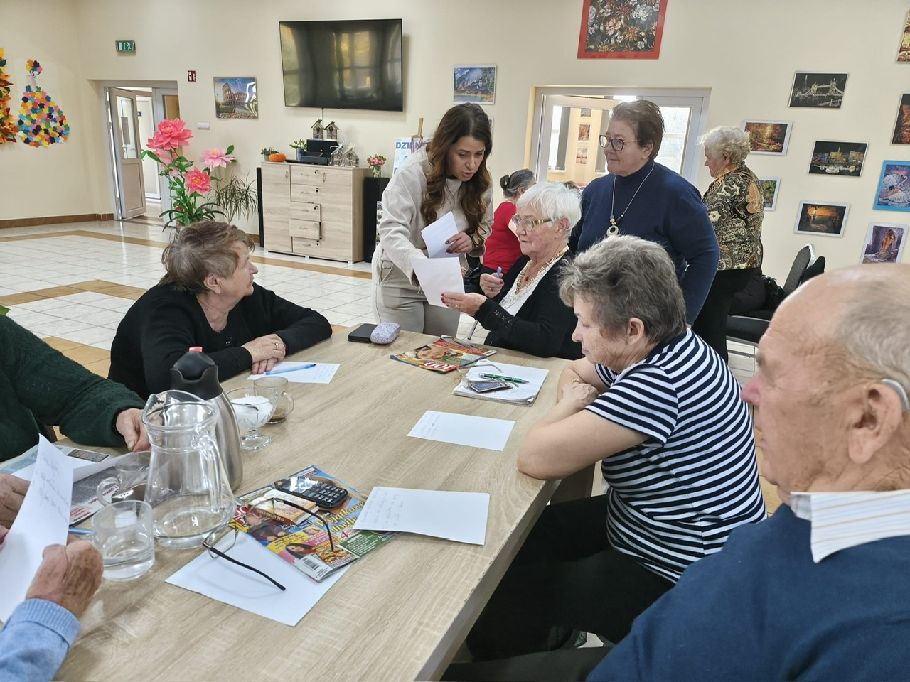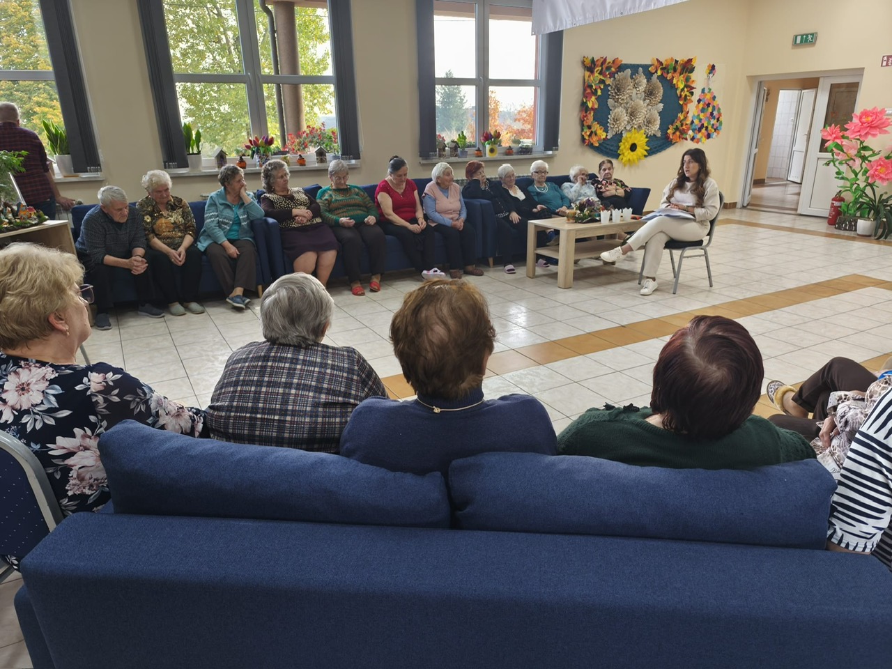 Zajęcia miały również charakter biblioterapeutyczny – wykorzystanie literatury w pracy z seniorami sprzyja refleksji, wzmacnia poczucie własnej wartości, łagodzi emocje i pomaga w budowaniu pozytywnego obrazu przeszłości.