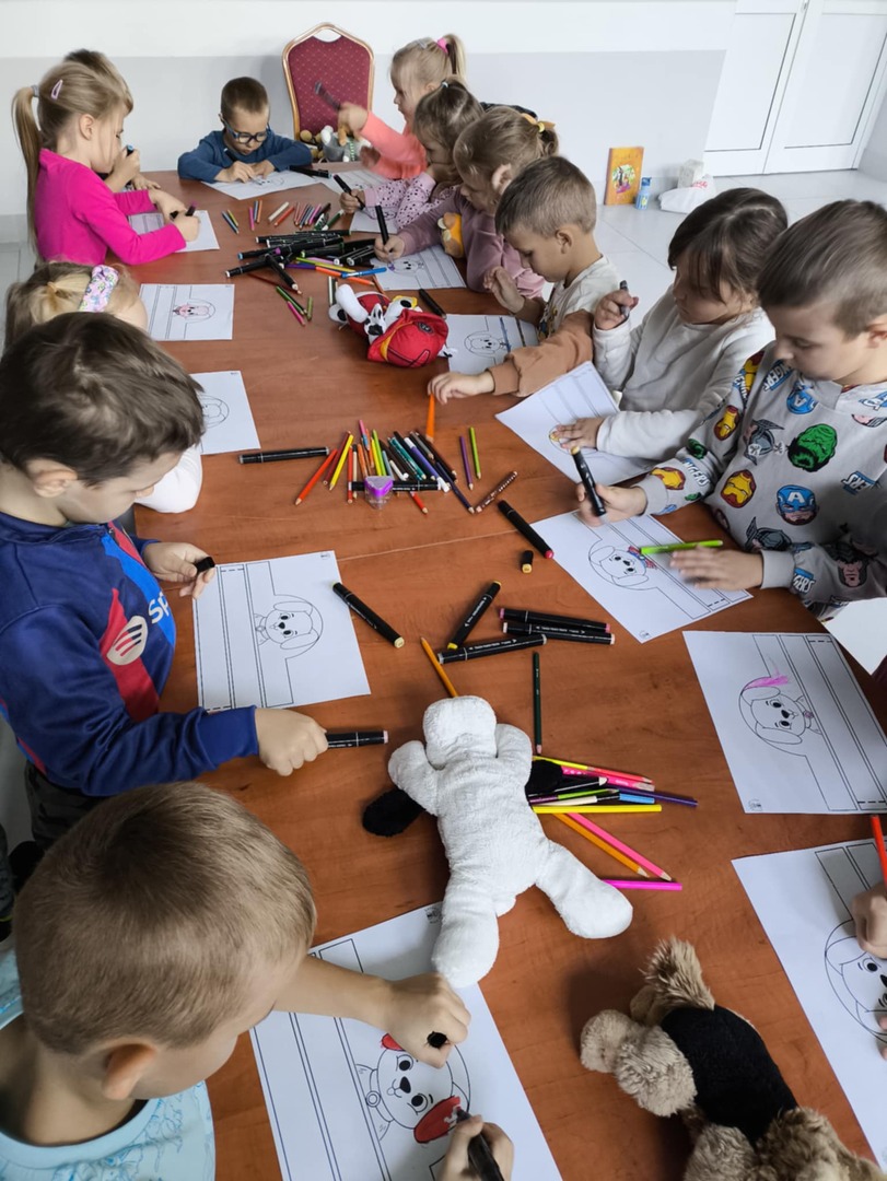 Podczas zajęć dzieci wysłuchały fragmentów bajek „Zakochany kundel” oraz „Przygody Reksia”. Lektura wprowadziła wszystkich w ciepły i przyjazny nastrój oraz przypomniała, jak ważna jest przyjaźń i odpowiedzialność wobec zwierząt. Po wspólnym czytaniu uczestnicy mogli wypożyczyć książki o zwierzętach, rozwijając tym samym swoje zainteresowania czytelnicze.