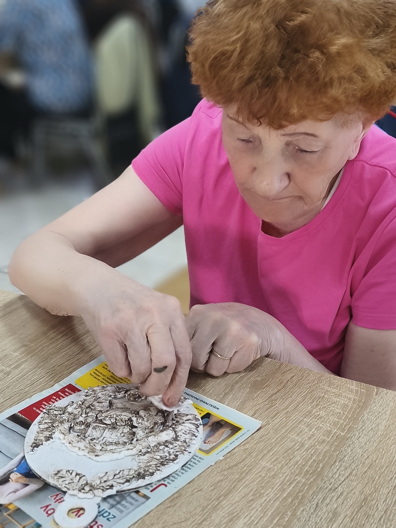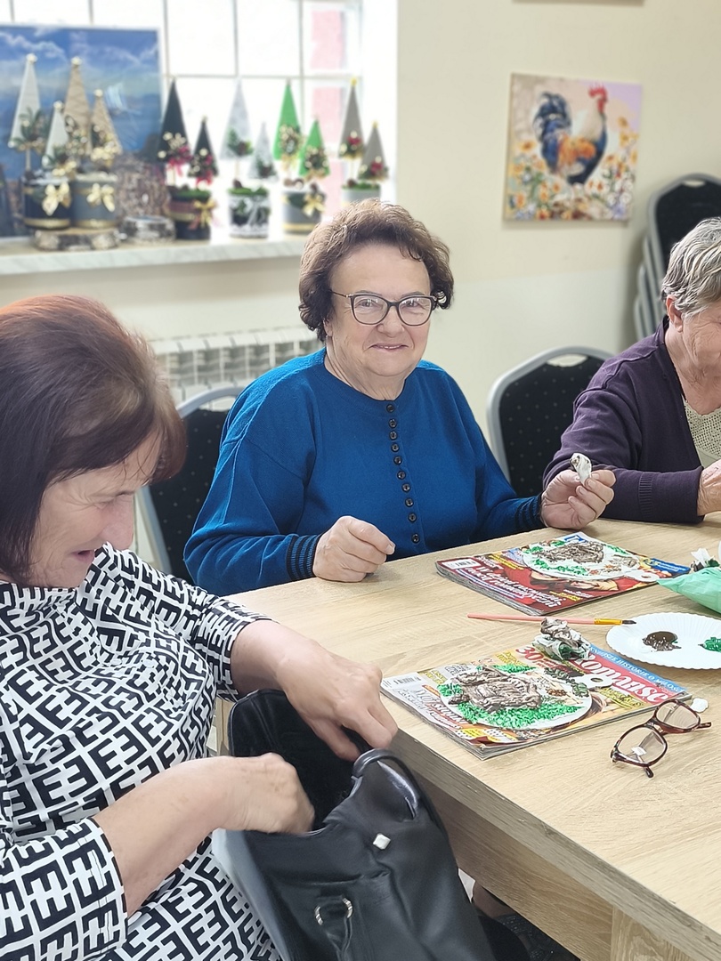 W Dziennym Domu Pomocy „Senior+” w Krzyżówkach odbyły się wyjątkowe warsztaty artystyczne prowadzone przez Panią Danusię z Lawendowej Polany. Spotkanie wprowadziło uczestników w magiczny, świąteczny nastrój dzięki tworzeniu niepowtarzalnych bombek. Seniorzy pracowali z masami plastycznymi, farbami i brokatem, odkrywając radość z łączenia faktur, kolorów i technik zdobniczych.
