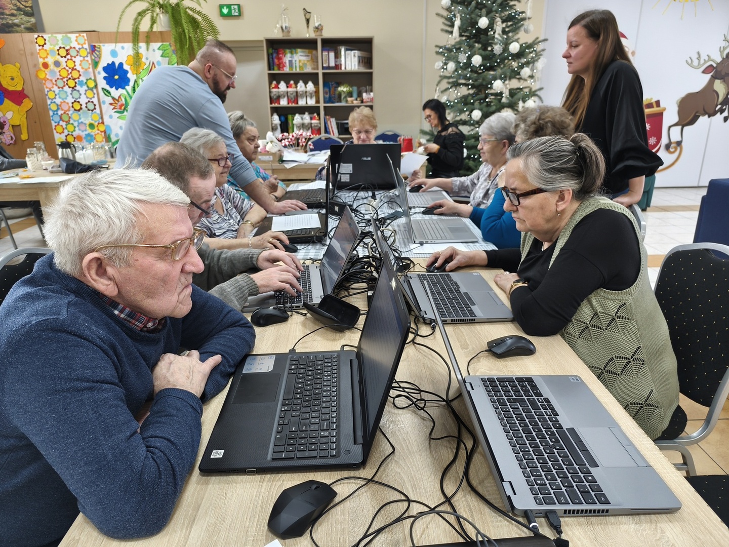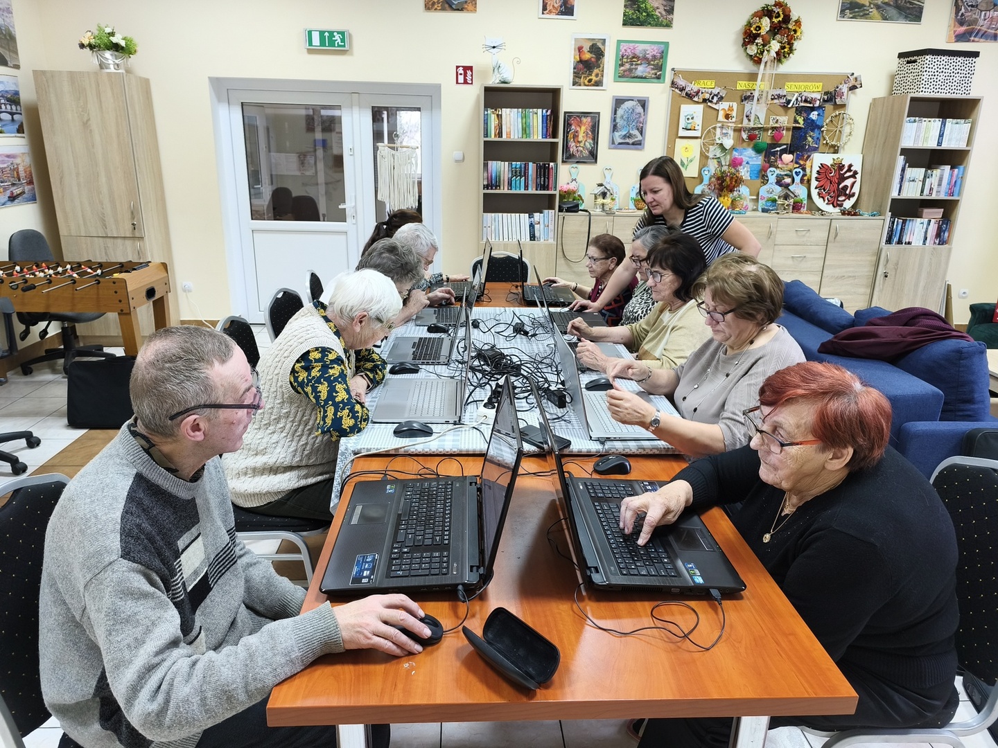 Zajęcia przebiegły w bardzo przyjaznej atmosferze sprzyjającej nauce i wzajemnej motywacji. Seniorzy z zainteresowaniem odkrywali możliwości nowych technologii i z dnia na dzień coraz pewniej poruszali się w cyfrowym świecie. To kolejne ważne doświadczenie, które wzmacnia ich samodzielność i otwiera drogę do nowych umiejętności.