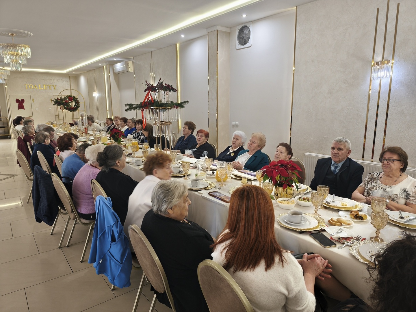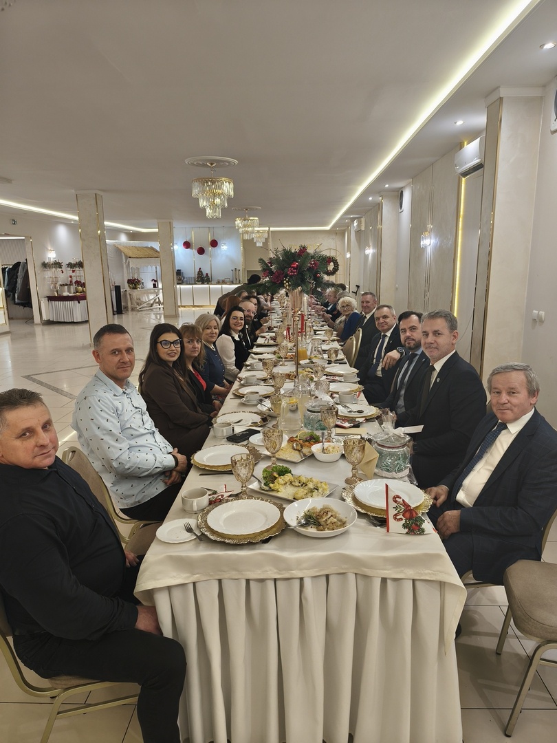 Centralnym momentem uroczystości było podzielenie się opłatkiem i złożenie sobie świątecznych życzeń. Ten symboliczny gest wprowadził wszystkich w nastrój wzajemnej życzliwości i wspólnoty. Wigilijne chwile upłynęły w serdecznej atmosferze rozmów, uśmiechów i refleksji nad nadchodzącymi Świętami Bożego Narodzenia.