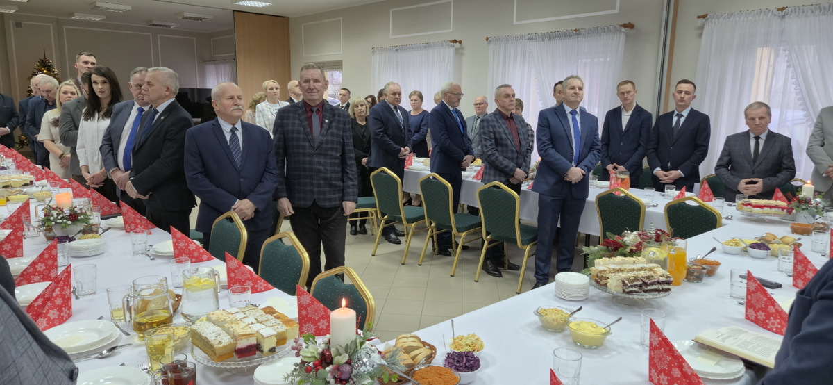 18 grudnia w budynku Świetlicy Wiejskiej w Radomicach odbyło się uroczyste spotkanie wigilijne, które zgromadziło Radnych i Sołtysów z całej gminy Lipno. Wydarzenie miało charakter integracyjny i podniosły, podkreślając znaczenie współpracy samorządowej oraz pielęgnowania lokalnych tradycji. Gospodarzem spotkania był Wójt Gminy Lipno Andrzej Piotr Szychulski, a wśród zaproszonych gości znaleźli się m.in. Przewodniczący Rady Gminy Lipno Andrzej Chojnicki oraz Przewodniczący Stowarzyszenia Sołtysów Gminy Lipno Stanisław Jagielski. Uroczystość rozpoczęła się od odczytania fragmentu Ewangelii przez ks. kan. Mirosława Korytowskiego, Proboszcza Parafii Wniebowzięcia Najświętszej Maryi Panny w Lipnie. W swoim wystąpieniu duchowny złożył uczestnikom serdeczne życzenia bożonarodzeniowe, nawiązując do idei wspólnoty oraz znaczenia działań podejmowanych na rzecz drugiego człowieka. Jego słowa stanowiły refleksyjne wprowadzenie do dalszej części spotkania, podkreślając wymiar etyczny i społeczny samorządowej służby. W wigilijnym spotkaniu uczestniczyli również przedstawiciele władz powiatowych – Starosta Lipnowski Krzysztof Baranowski oraz Członek Zarządu Powiatu Zbigniew Agaciński. Obecni byli także kierownicy gminnych jednostek organizacyjnych, co dodatkowo podkreśliło rangę wydarzenia oraz jego integracyjny charakter. Po wystąpieniu Proboszcza głos zabrali Wójt Gminy Lipno oraz Starosta Lipnowski, składając uczestnikom serdeczne życzenia świąteczne i noworoczne, wyrażając jednocześnie uznanie dla zaangażowania osób działających na rzecz lokalnej społeczności. Na uczestników czekały starannie przygotowane i pięknie udekorowane stoły oraz tradycyjne potrawy wigilijne, które zapewnił Dworek Magdalenka w Biskupinie. Świąteczna oprawa i atmosfera sprzyjały rozmowom, wymianie doświadczeń oraz umacnianiu relacji pomiędzy przedstawicielami samorządu i sołectw. Wigilia z Radnymi i Sołtysami była nie tylko okazją do złożenia życzeń, lecz także wyrazem kultywowania bogatych tradycji ziemi dobrzyńskiej, gdzie wigilijna wieczerza od pokoleń symbolizuje zgodę, pokój i jedność. To wydarzenie, głęboko zakorzenione w lokalnym dziedzictwie, potwierdziło jak istotne jest budowanie trwałych więzi w społeczności samorządowej oraz pielęgnowanie wartości, które łączą różne środowiska i sprzyjają wspólnemu działaniu na rzecz rozwoju gminy Lipno.