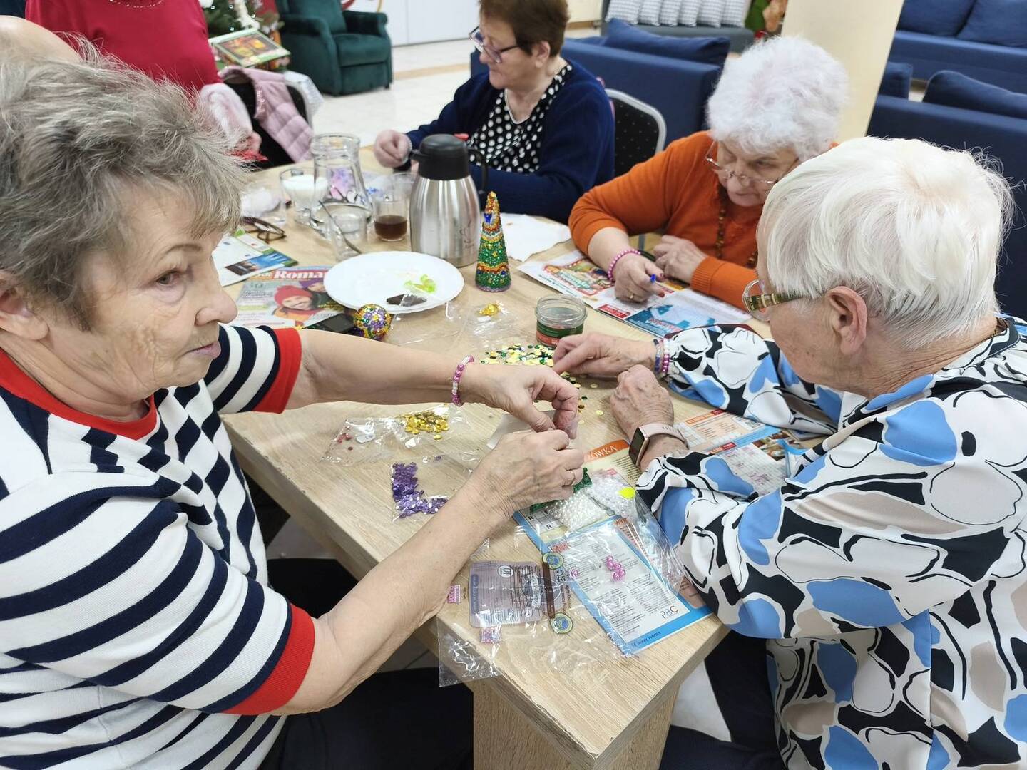 W grudniu odbyły się także warsztaty z Panią Danusią z Lawendowej Polany, podczas których Seniorzy tworzyli bombki świąteczne. Warsztaty te przyniosły wiele radości i pozwoliły uczestnikom rozwijać zdolności manualne oraz poczucie sprawczości.